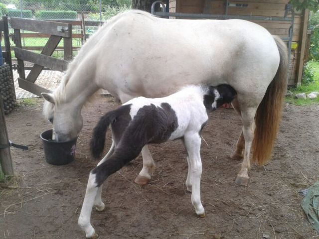 Ebenfalls in 2013: ein Stutfohlen der Züchterin Ulrike Hemmann aus Hofheim. Dieses Fohlen hat nicht nur äußerlich sehr viel von unserem Hengst, es ist bereits nach zwei Wochen getöltet und hat auch Pass. Ebenfalls ein sehr vielversprechendes Talent.