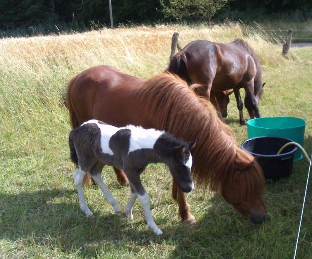 Dieses Fohlen (Bild oben) ist sogar dreifarbig, was sehr selten vorkommt.